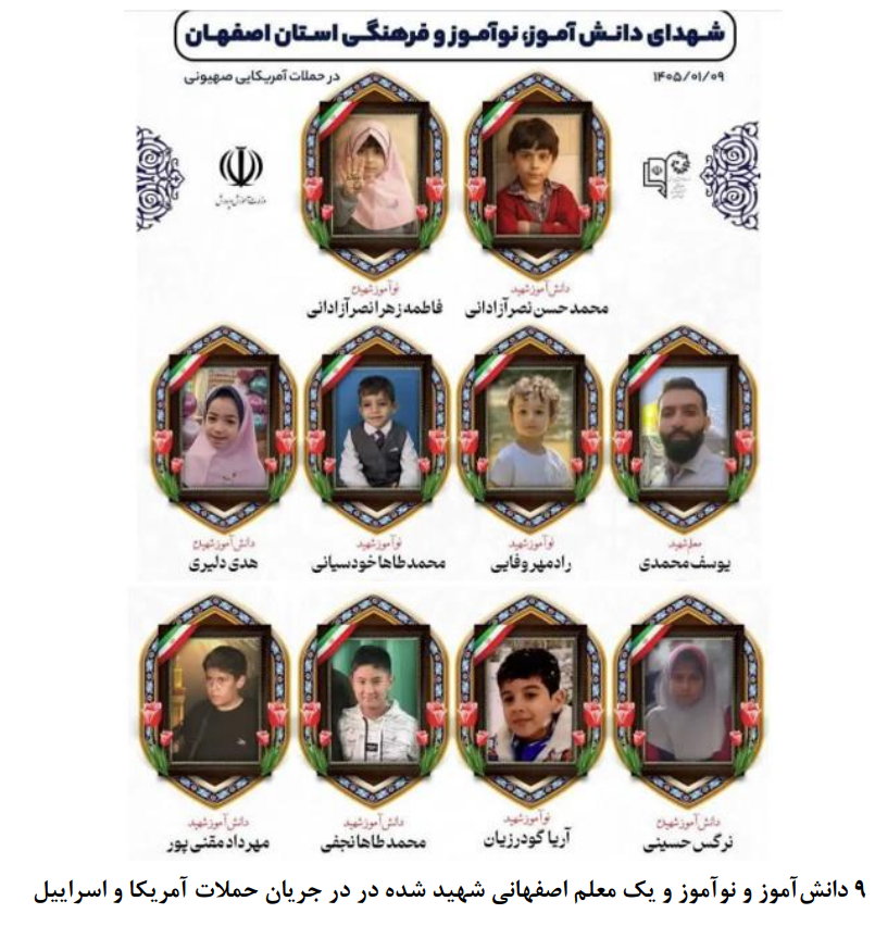 ·         اصفهان : معاون امنیتی استانداری اصفهان گفت جنگنده‌های آمریکایی-صهیونی صبح امروز با تعرض به آسمان اصفهان «شهربازی رؤیاها» را هدف حملات خود قرار دادند.
